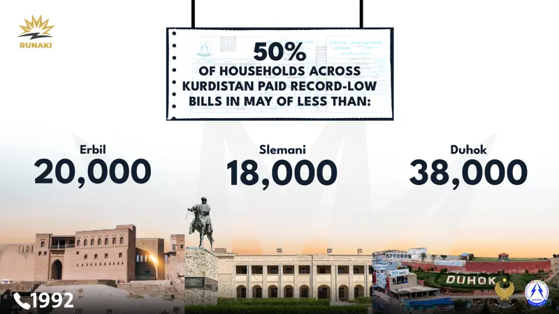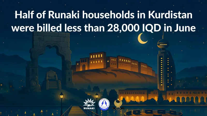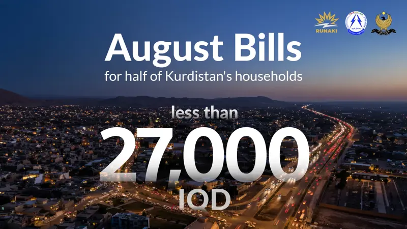 The KRG announced last month that subscribers in the Runaki initiative have already seen record-low bills. This is due to the KRG’s new progress tariff designed to protect low-income households and encourage responsible consumption. Under the new tariffs, 80% of citizens pay less than the previous cost of diesel generators and national power combined.
