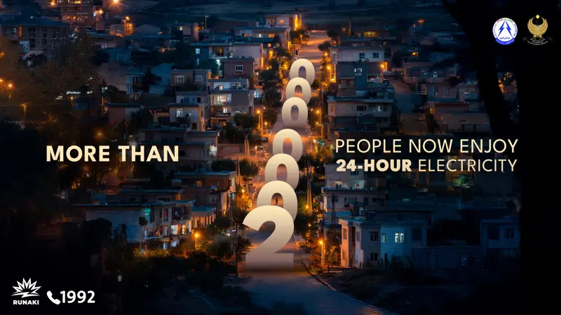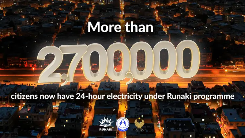 Erbil, Kurdistan Region (GOV.KRD) – The Ministry of Electricity is pleased to announce today that more than 2 million citizens, or around 30% of the Kurdistan Region population, now have 24-hour electricity under the Runaki program.