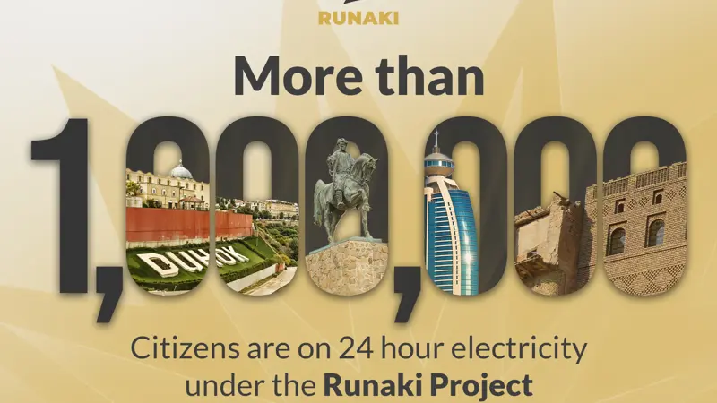 Prime Minister Masrour Barzani announced the Runaki program in October 2024 to deliver 24-hour electricity to every home and business by the end of 2026. The KRG Council of Ministers unanimously approved the national program on 14 May.