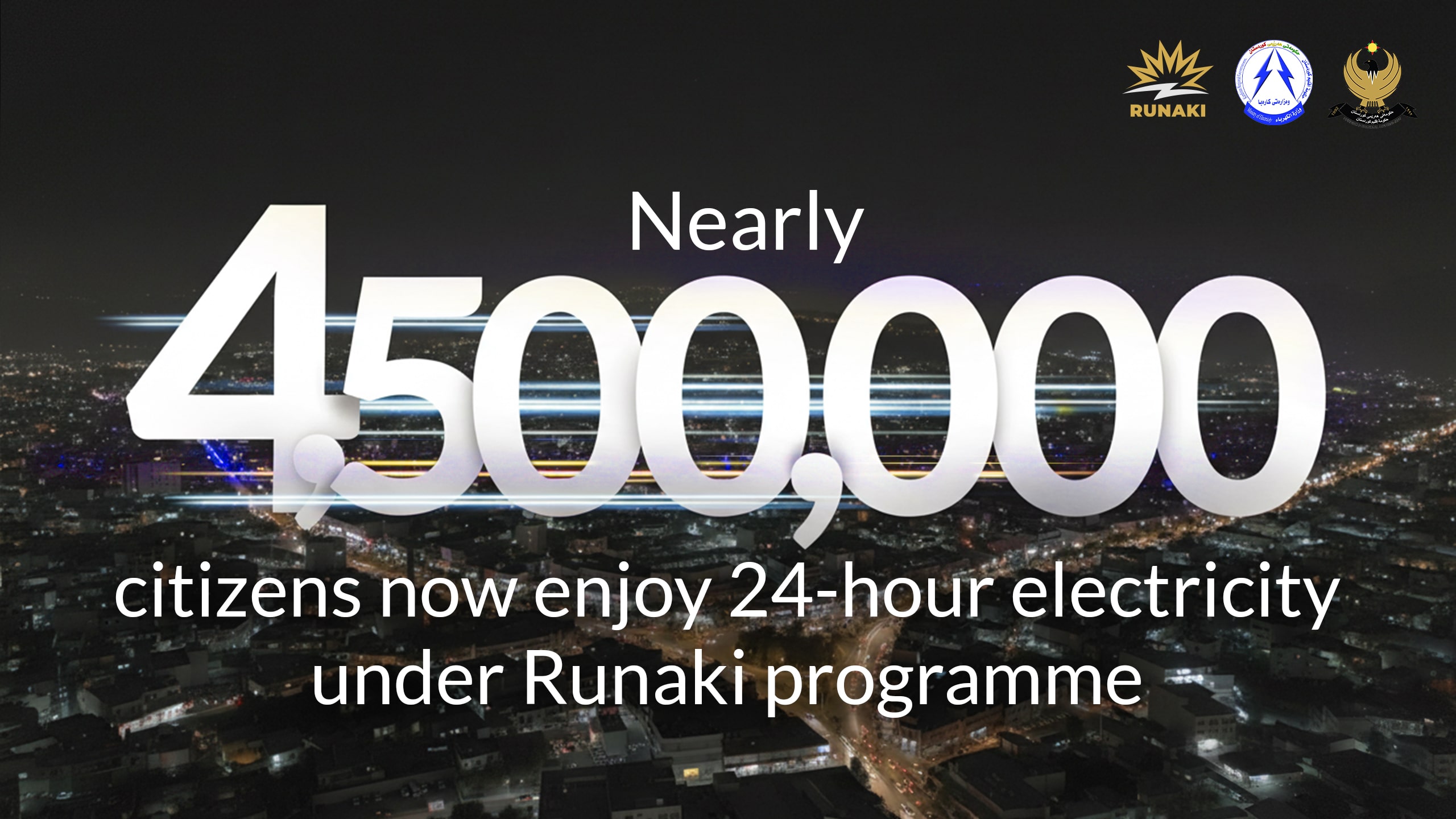 Erbil, Kurdistan Region (GOV.KRD) – The Ministry of Electricity is pleased to announce today that nearly 4.5 million citizens, or nearly 70% of the Kurdistan Region population, now have access to 24-hour electricity under the Runaki programme.