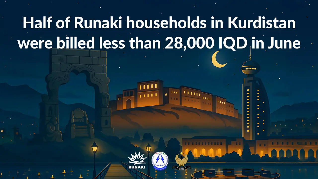 Erbil, Kurdistan Region (GOV.KRD) — The Ministry of Electricity is pleased to announce that households and businesses under the Runaki programme received record-low electricity bills for June.