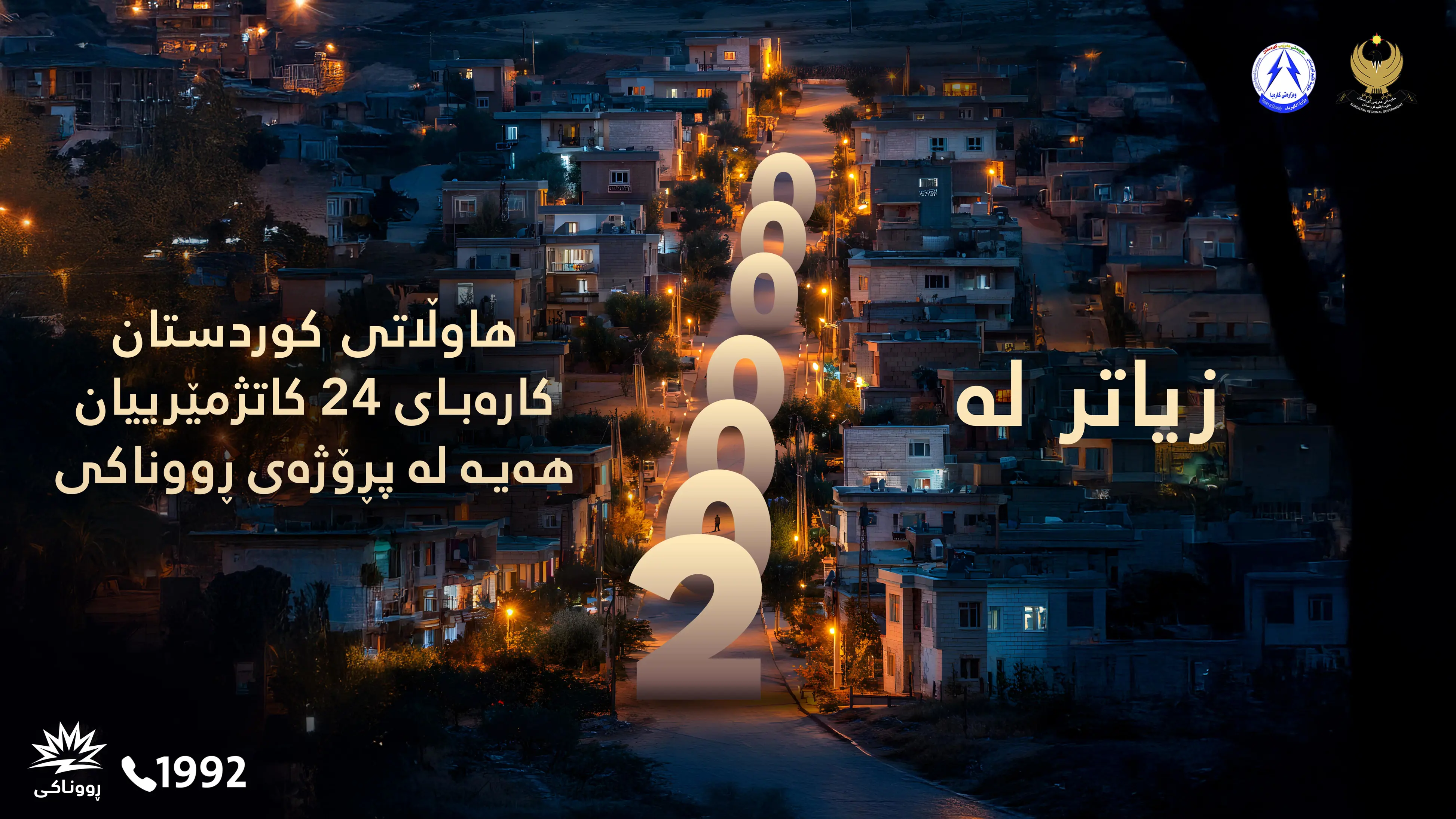 هەولێر، هەرێمی کوردستان (GOV.KRD) — وەزارەتی کارەبای حکومەتی هەرێمی کوردستان ئەمڕۆ خۆشحاڵە بە ڕاگەیاندنی گەیشتنی کارەبای 24 کاتژمێری بۆ زیاتر لە 2 ملیۆن هاوڵاتی، کە دەکاتە نزیکەی 30%ـی دانیشتووانی هەرێمی کوردستان لە چوارچێوەی پڕۆژەی ڕووناکی.